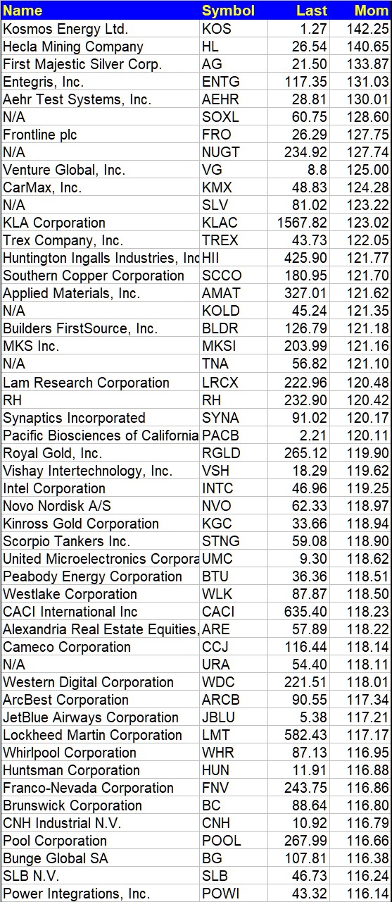 50 Stocks With High Momentum
