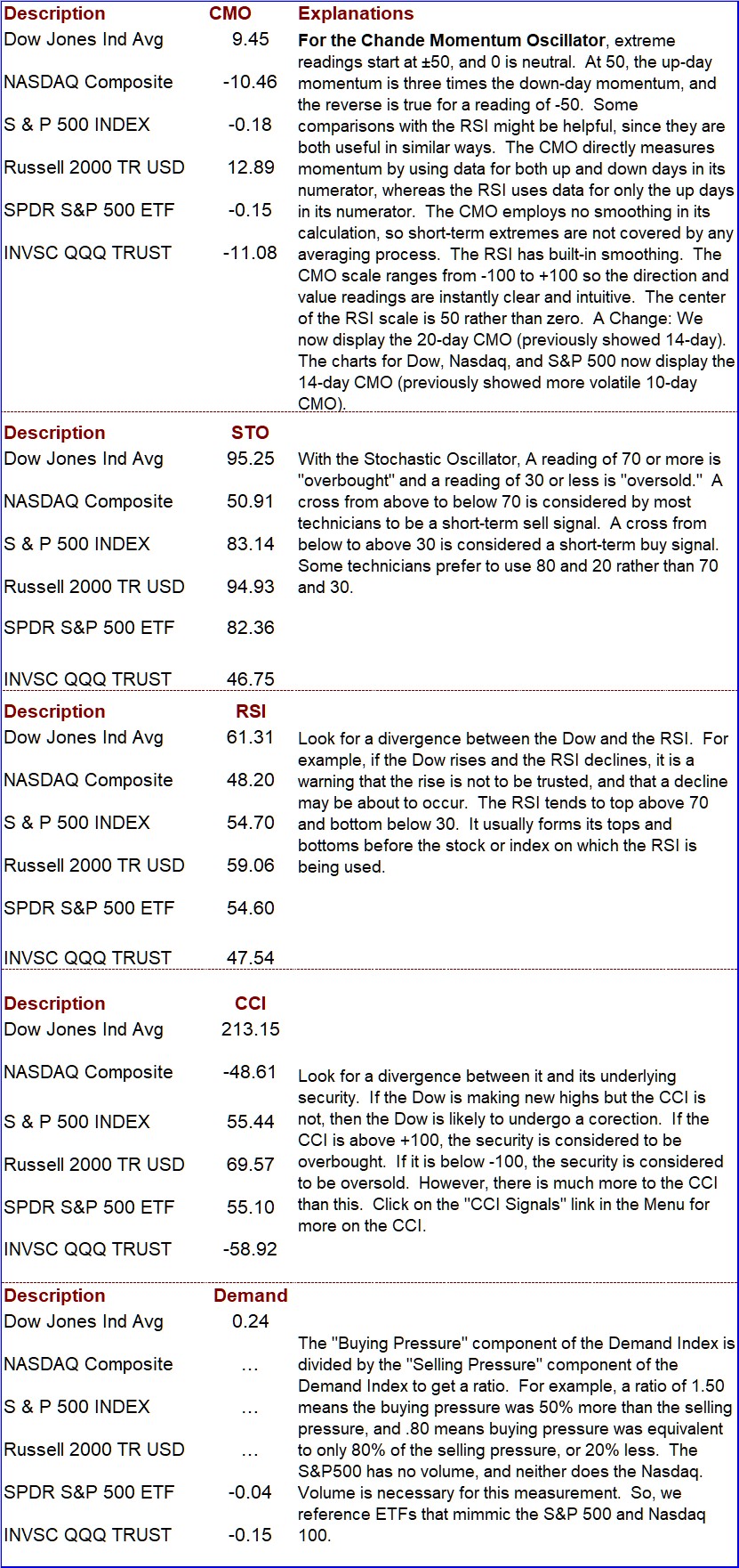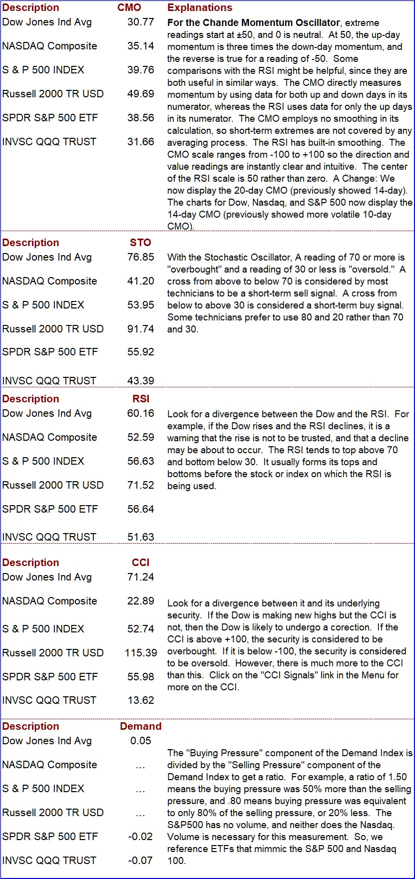 CMO, STO, RSI, CCI, Demand Index