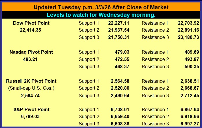 ♦ Key Intraday Levels: PAL estimates that if a stock benchmark is above its indicated target level for more than 30 minutes of the first hour of trading, that benchmark has a very high probability of closing higher. The bullish target value for the Dow is 49,641. The bullish target for the S&P 500 is 6,979. The bullish target for the Nasdaq Composite Index is 23,638. On the other hand, if a stock benchmark is below its estimated bearish target level for more than 30 minutes of the first hour of trading, that benchmark has a very high probability of closing lower. The bearish target value for the Dow is 49,078. The bearish target for the S&P 500 is 6,901. The bearish target for the Nasdaq Composite Index is 23,393.