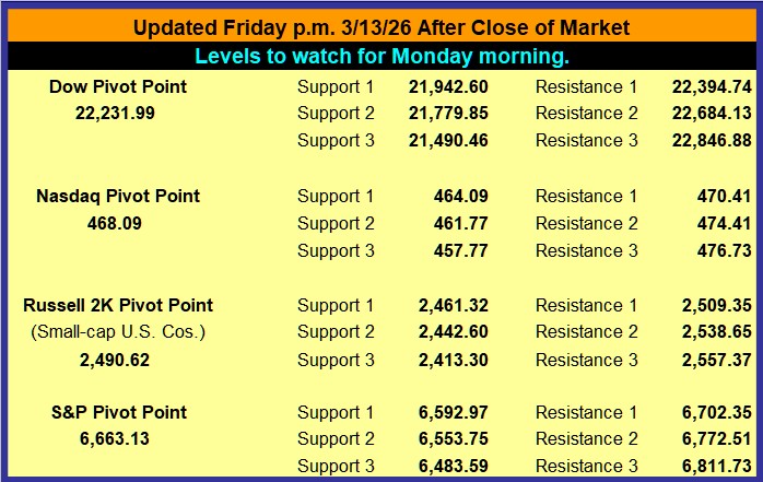 ♦ Key Intraday Levels: PAL estimates that if a stock benchmark is above its indicated target level for more than 30 minutes of the first hour of trading, that benchmark has a very high probability of closing higher. The bullish target value for the Dow is 50,407. The bullish target for the S&P 500 is 7,004. The bullish target for the Nasdaq Composite Index is 23,378. On the other hand, if a stock benchmark is below its estimated bearish target level for more than 30 minutes of the first hour of trading, that benchmark has a very high probability of closing lower. The bearish target value for the Dow is 49,865. The bearish target for the S&P 500 is 6,926. The bearish target for the Nasdaq Composite Index is 23,099.